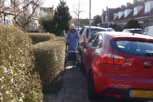 Maar daar kan men uiteraard ook zelf veel aan doen. Houd rekening met voetgangers met een rollator of een kinderwagen. Dus geen beplanting over de voetpaden laten groeien, kliko’s netjes neerzetten, auto’s niet te ver op het voetpad parkeren, e.d.